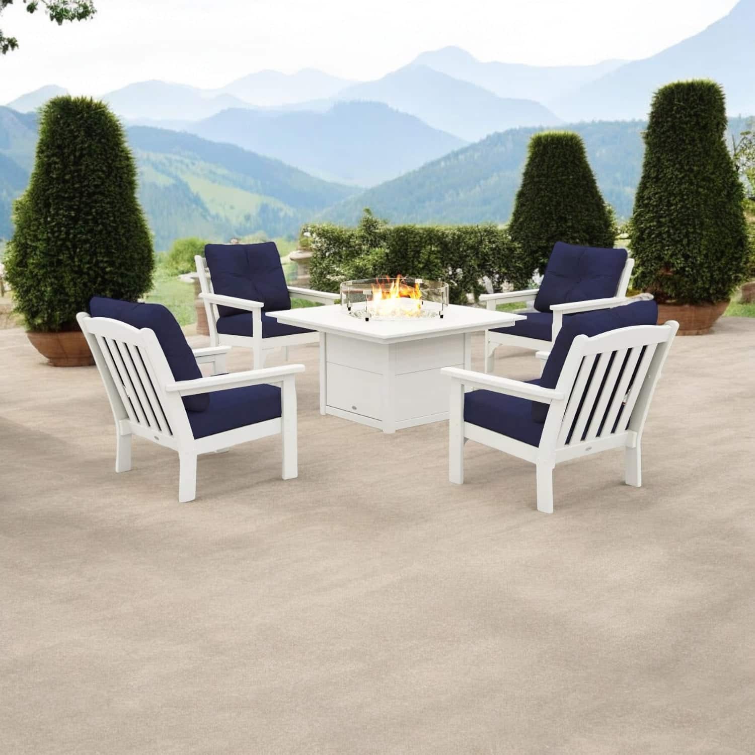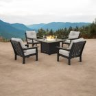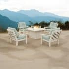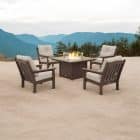 Elevate your outdoor living space with the Polywood Sunbrella Fire Chat Set, where comfort, durability, and style come together seamlessly.