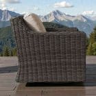 The chairs and sofa feature fade-resistant all-weather wicker, handwoven with a natural grass weave look and multi-textural appeal. Plush seat cushions, upholstered in Sunbrellaยฎ fabric provides luxurious comfort and timeless elegance. Designed for lasting enjoyment, the Summit Breeze set promises years of outdoor dining and entertaining with family and friends.